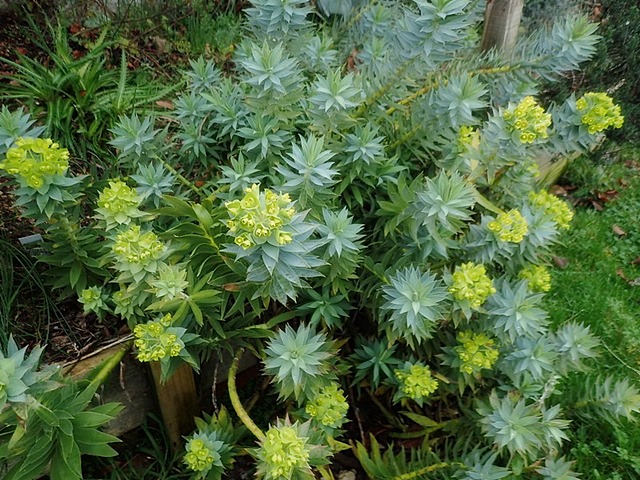 ユーフォルビア・リギダはシルバーの羽根のように細い葉がクール。葉は柔らかく常緑性です。茎が立ち上がるように生育するのがトウダイグサ科の名前の由来です。冬は紅葉し、春になると黄色い花を咲かせます。