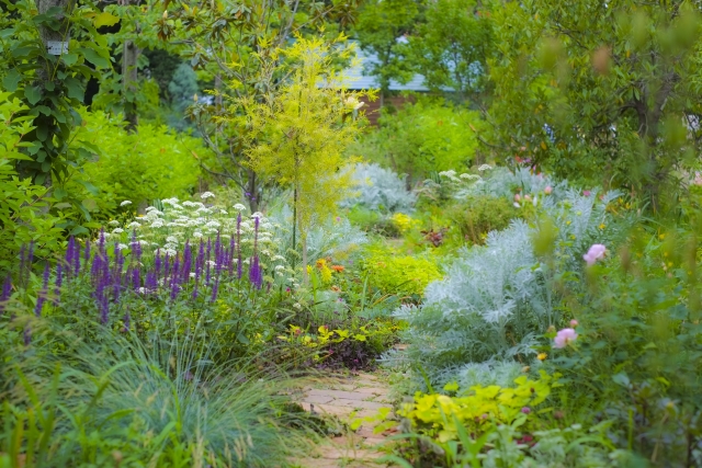 細長い玄関アプローチに鉢をごちゃごちゃ置きすぎて見栄えが悪くなってしまう。あるいは、憧れのイングリッシュガーデンを造ったが、宿根草やグラス類の穂の威勢が良すぎて、通路にまでせり出して倒れてきて、狭くて通りにくいという事例です。