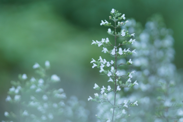 ・解説:シソ科の宿根草カラミンサは、花に派手さはないものの、小花が沢山ついてよい雰囲気を醸し出してくれます。花色は白、ピンク、薄紫などで春から秋まで長く咲いてくれます。爽やかなミントのような香りのするハーブなので、お茶にして飲むこともできます。日なたでも半日陰でもよく育ちますが、水切れには注意しましょう。