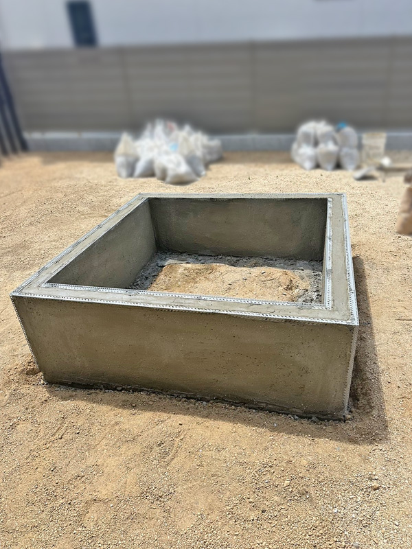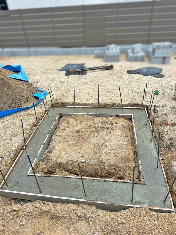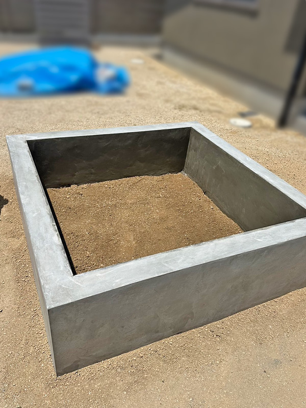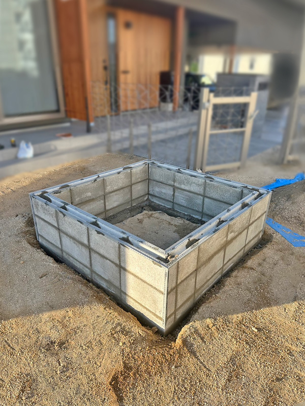 ブロックを積み、表面をモルタルで塗ってRCの打放し風に仕上げました。