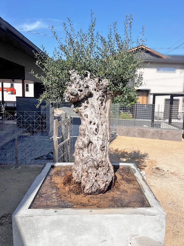 太くずっしりした幹が圧巻の古木オリーブ!まさにシンボルツリー